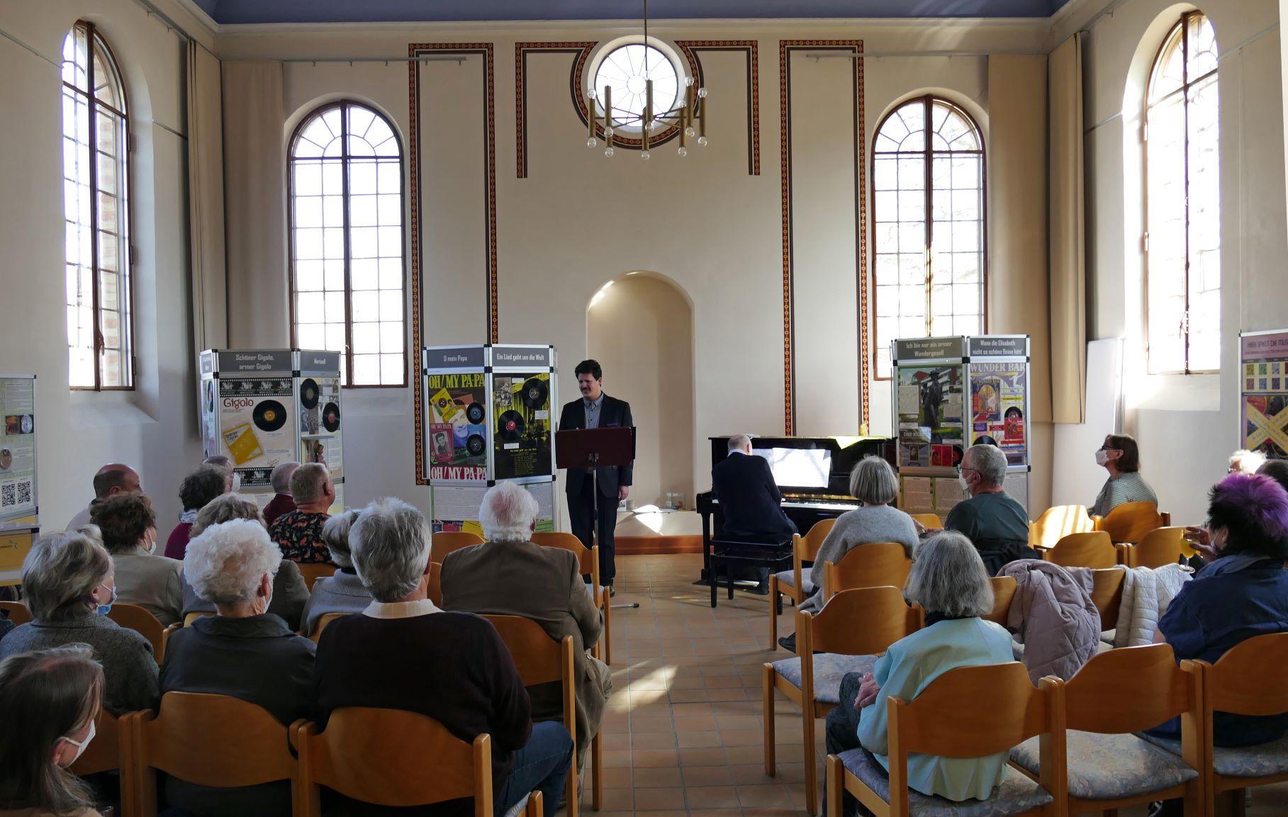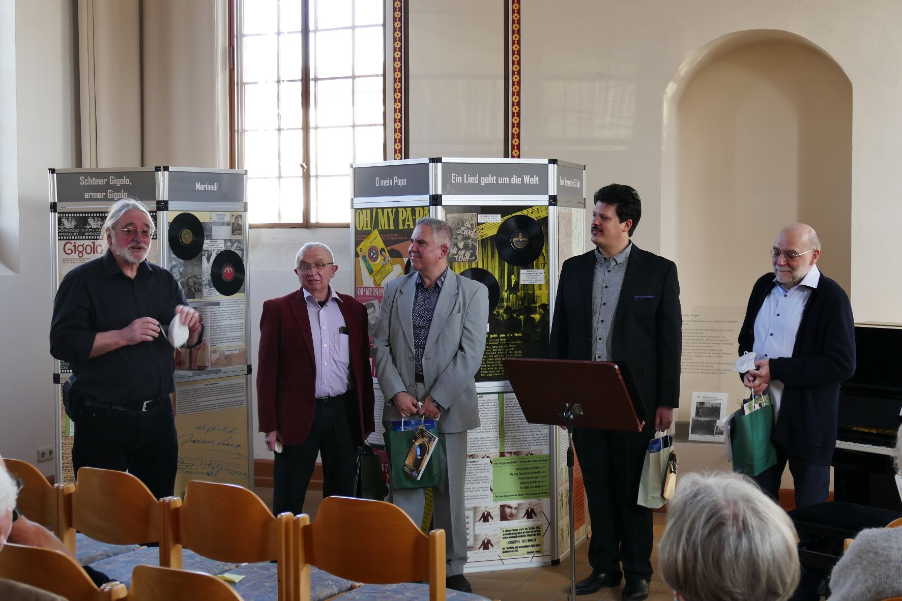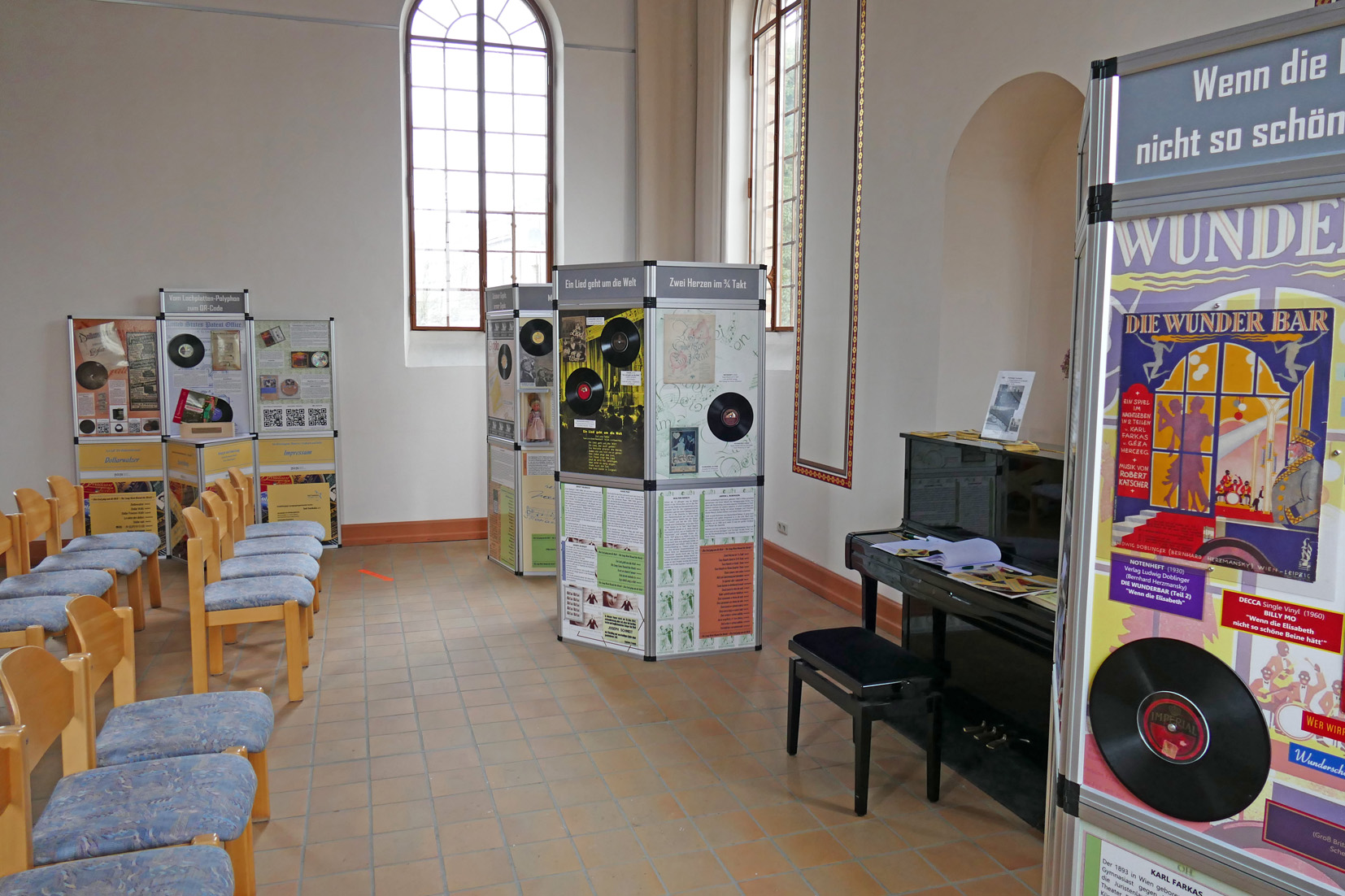 Die Ausstellung "Ein Lied geht um die Welt" in der Alten Synagoge in Krakow am See dokumentierte 18 weltbekannte Lieder überwiegend aus der Zwischenkriegszeit. Sie stammten von jüdischen Komponisten und/oder Autoren, deren Namen im Nationalsozialismus konsequent verschwiegen wurden und die auch heute nur wenige Menschen kennen. Die liebevoll gestaltete Schau vermittelte eingäng den bedeutenden kulturellen Beitrag, den jüdische Künstler vor und nach der Zeit des Nationalsozialismus in Deutschland geleistet haben. Sie zeigte Original-Tonträger, informierte über Urheber und Interpreten und bot die Möglichkeit, über QR-Codes die Musikstücke auf dem Smartphone anzuhören. So wurden die altbekannten Songs wieder lebendig.
