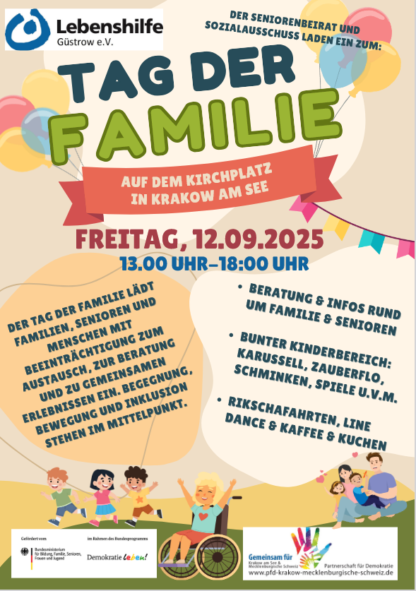 Ein Tag für die Familie in all ihren Facetten sowie alle Menschen, die zu ihrem sozialen Umfeld gehören. Familien sind die kleinste soziale Einheit in unserer Gesellschaft und spiegeln sie gleichzeitig wider. Familien stehen in der heutigen Zeit enormen Herausforderungen gegenüber. Dies zu würdigen und gleichzeitig Hilfestellung zu leisten, ist eines der Anliegen des Familientages. Und zur Familie gehören alle, generationsübergreifend, inklusiv und integrativ. Deshalb öffnet das niedrigschwellige Angebot auch die Türen für alle. Der Aktionstag betont die Bedeutung von Wohlbefinden und gemeinsamer Zeit im Familienalltag. Neben dem Raum für gemeinsames Erleben und Begegnung gibt es praxisnahe Impulse zur Bewältigung alltäglicher Herausforderungen, Beratungsstationen und kreative Mitmachangebote. An einem „Baum der Wünsche“ können alle Gäste ihre Anregungen und Bedürfnisse ausdrücken - ein Dialog, der den Zusammenhalt stärkt und die Gemeinschaft weiterentwickelt. Der Aktionstag am 12.09.2025 ist also ein nachhaltiger Beitrag zu einer offenen, engagierten und solidarischen Gesellschaft, in der sich alle Menschen aktiv einbringen und wertgeschätzt fühlen. |
